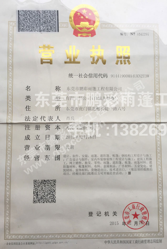 企业资质_东莞雨篷_东莞雨篷公司_东莞彩蓬公司_东莞市鹏彩雨蓬工程有限公司